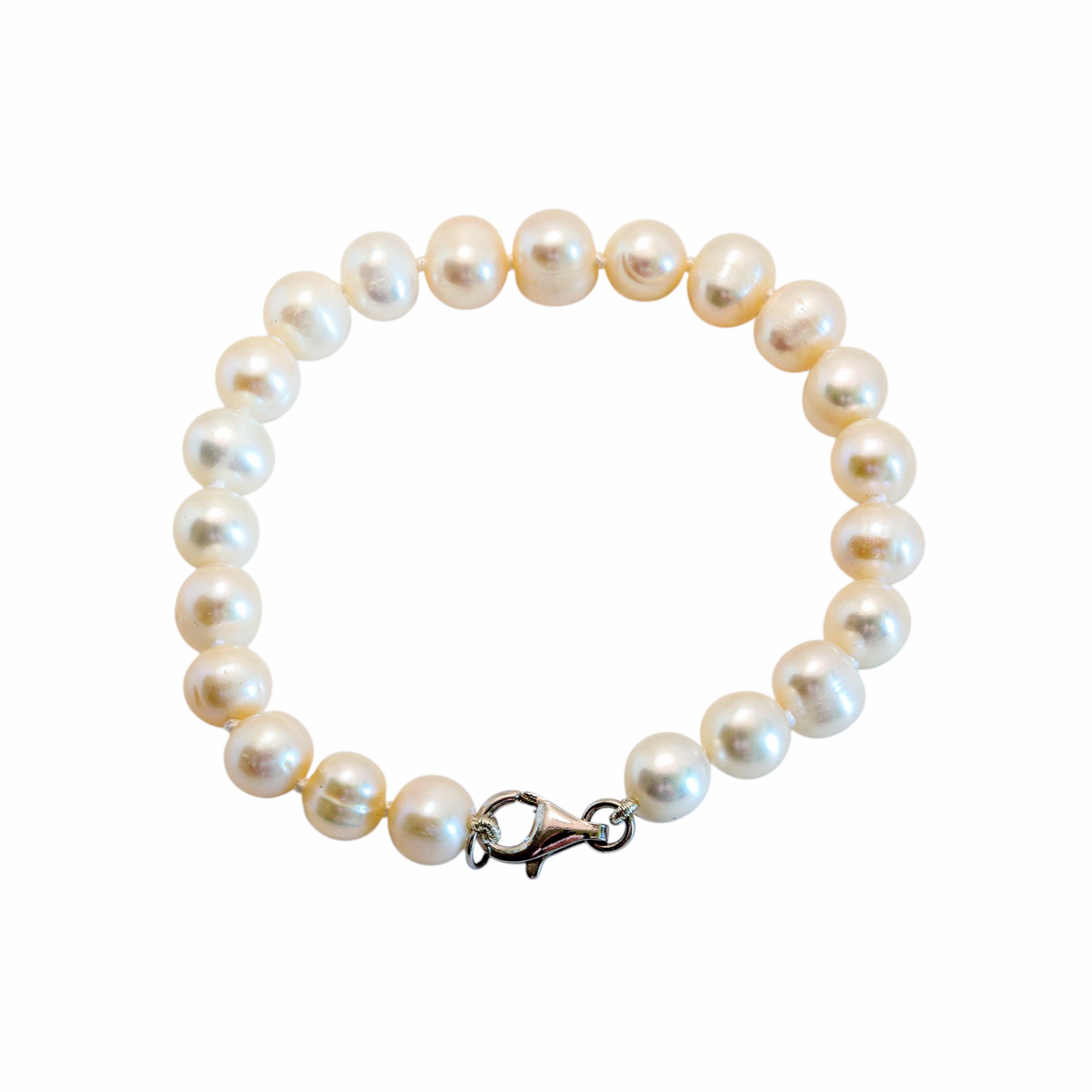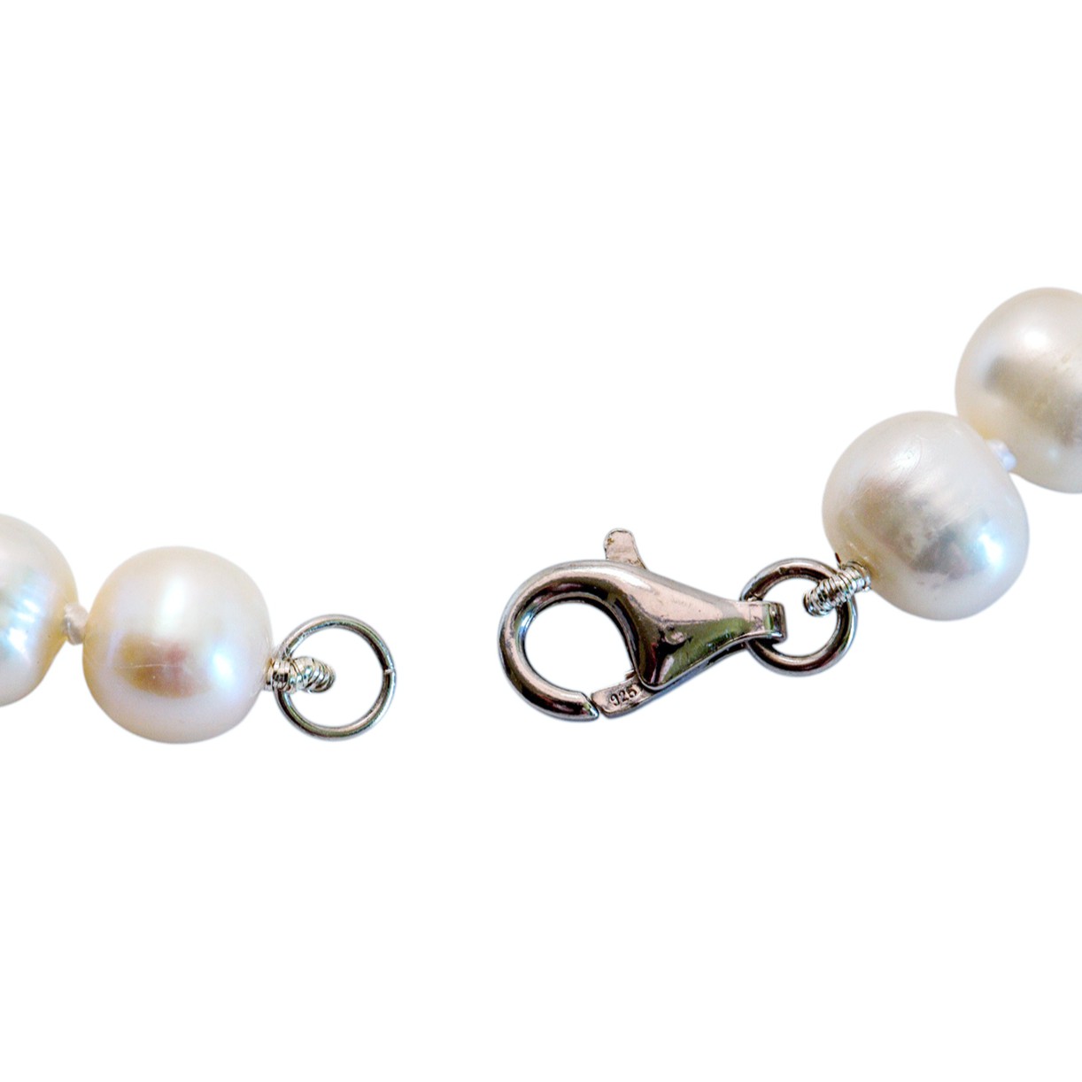 Kleine natürliche Merkmale machen jedes Armband zu einem einzigartigen Unikat und unterstreichen die Echtheit der verwendeten Perlen. Die Perlen schimmern in stilvollem Weiß mit zarten cremefarbenen Nuancen und reflektieren das Licht auf besonders elegante Weise.