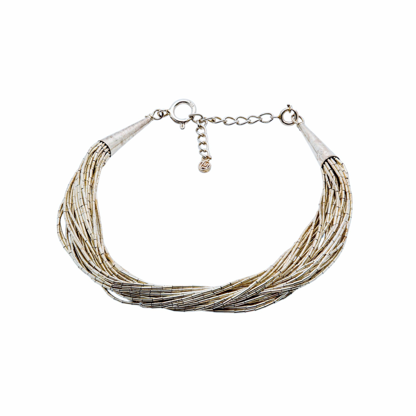 Dieses edle Mehrstrangarmband aus hochwertigem 925er Sterlingsilber vereint stilvolle Eleganz mit feinster Handwerkskunst. Zahlreiche filigrane Silberstränge formen ein harmonisches, fließendes Design, das sich sanft um das Handgelenk legt und bei jeder Bewegung wunderschön schimmert.