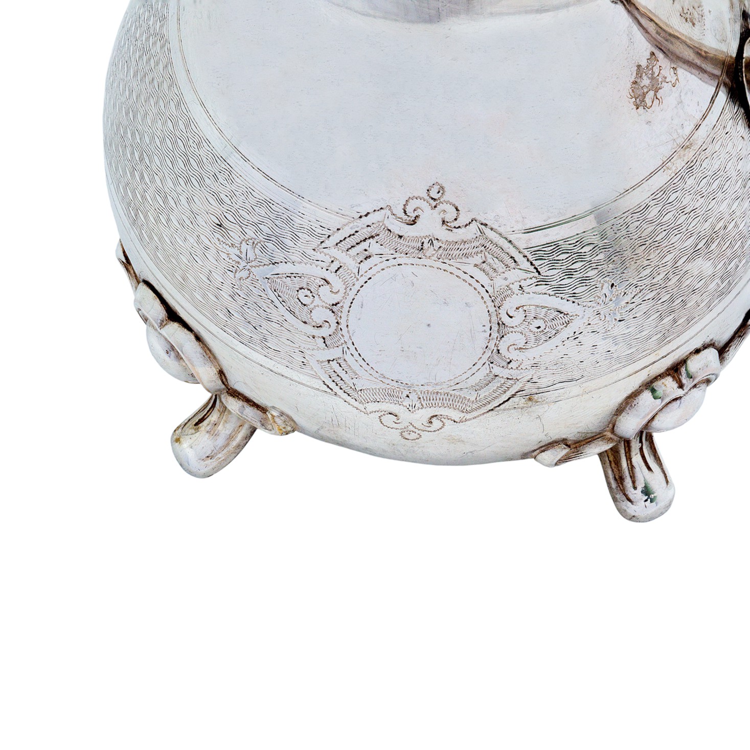 Besonders charakteristisch sind die vier dekorativen Füße, auf denen der Gießer sicher und stilvoll ruht. Diese liebevoll gestalteten Standfüße schenken dem Stück nicht nur Stabilität, sondern auch einen anmutigen, klassischen Charme.