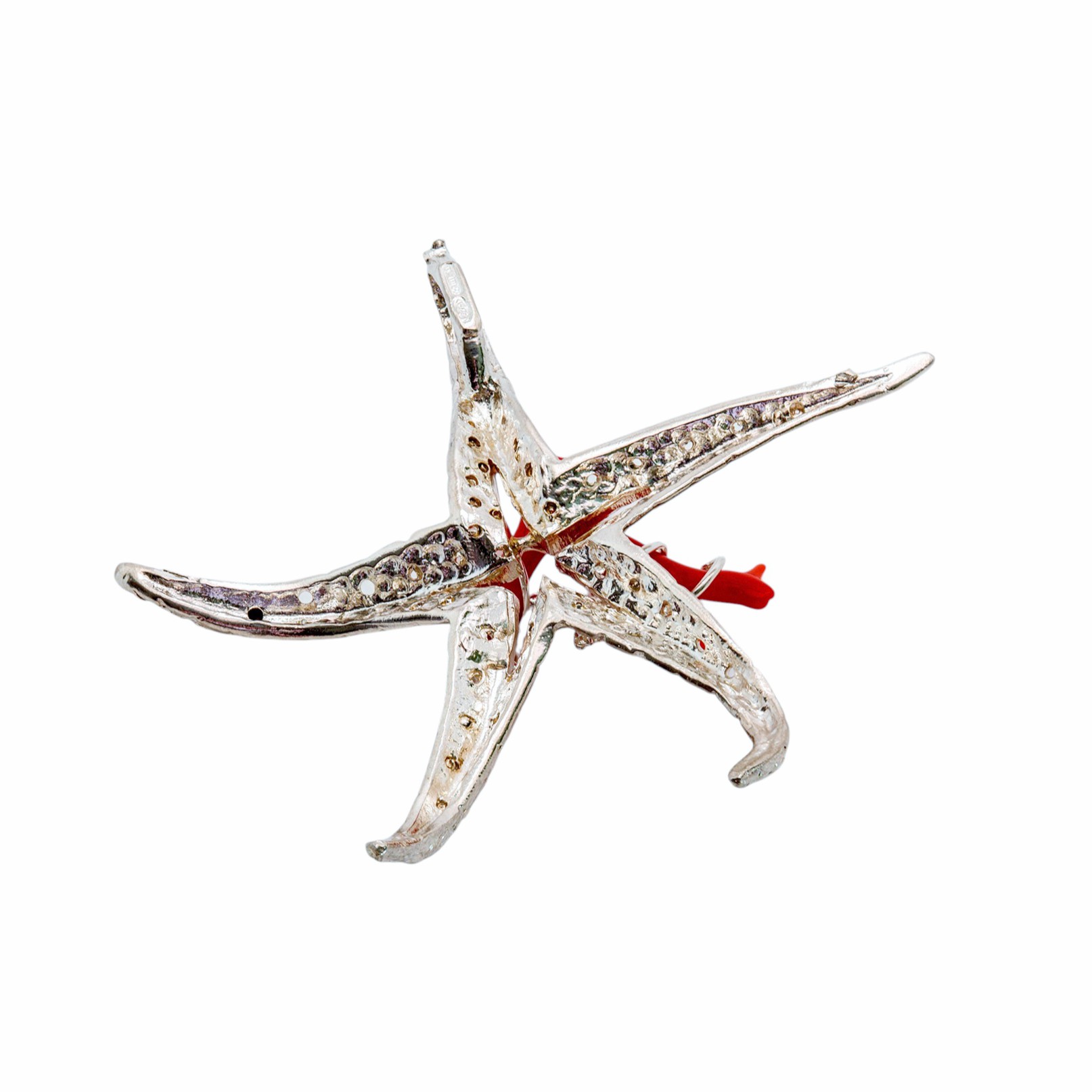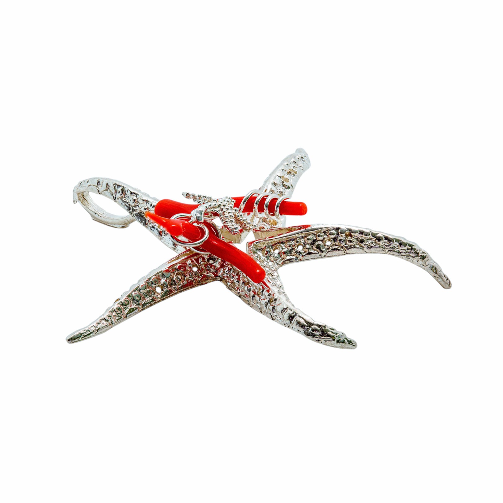 Großer Seestern Anhänger 925 Sterlingsilber mit Koralle – maritimer Schmuck in edlem Design