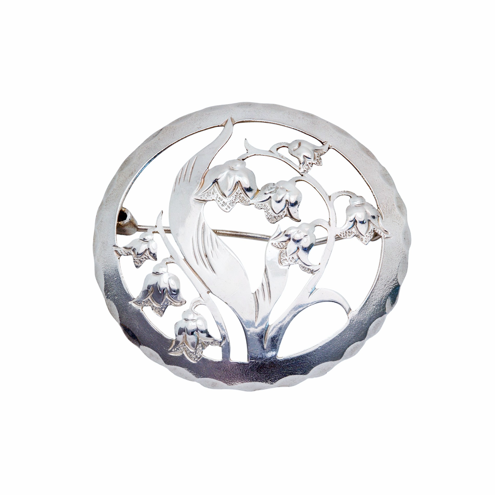 Handgearbeitete Maiglöckchen Silberbrosche 900er Silber