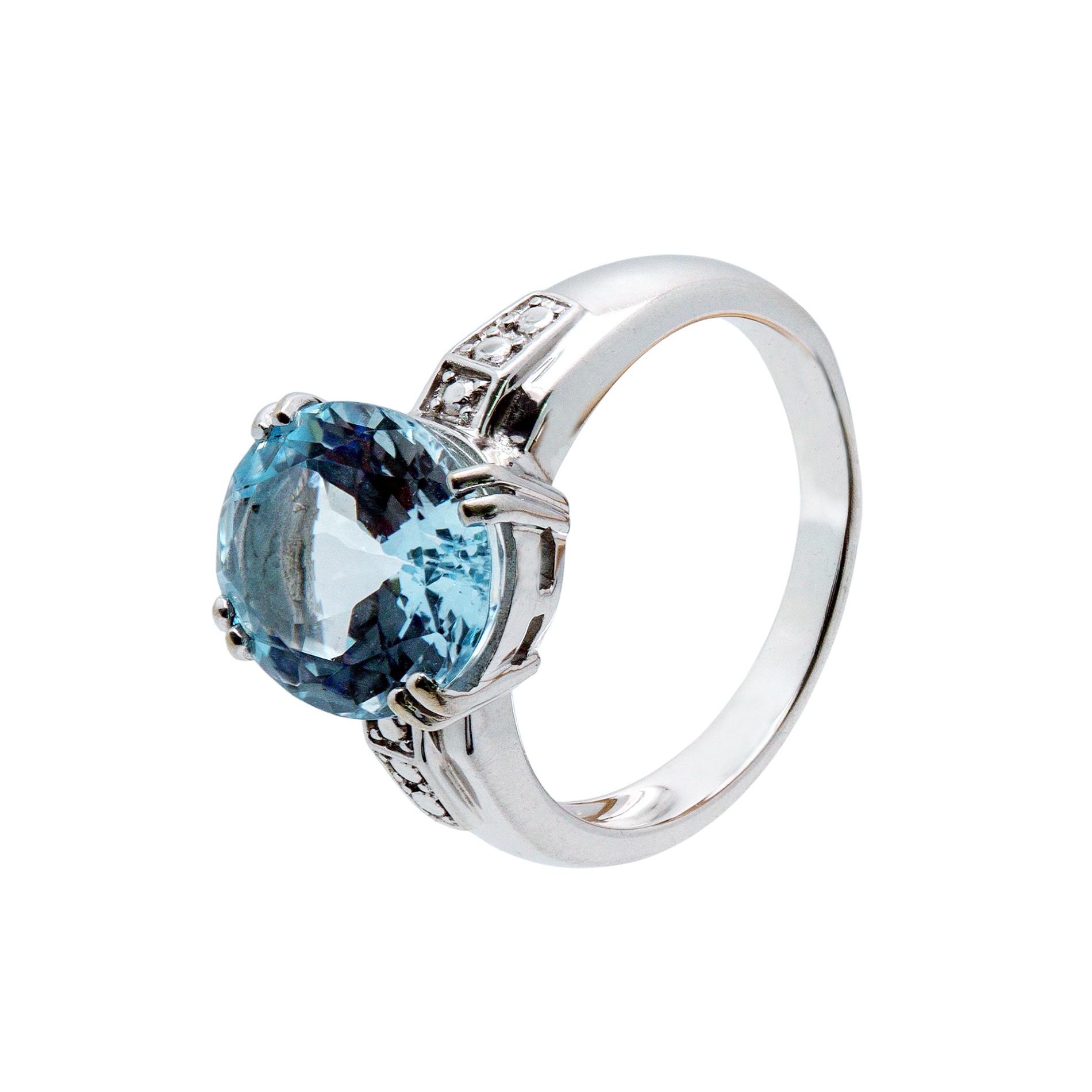 Seitlich der Ringschiene sorgen kleine, funkelnde Akzente für zusätzliche Eleganz und verleihen dem Schmuckstück eine harmonische Balance zwischen Moderne und klassischem Design. Das Weißgold unterstreicht die kühle Farbwirkung des Aquamarins und bietet eine langlebige, widerstandsfähige Grundlage, die sich angenehm tragen lässt.