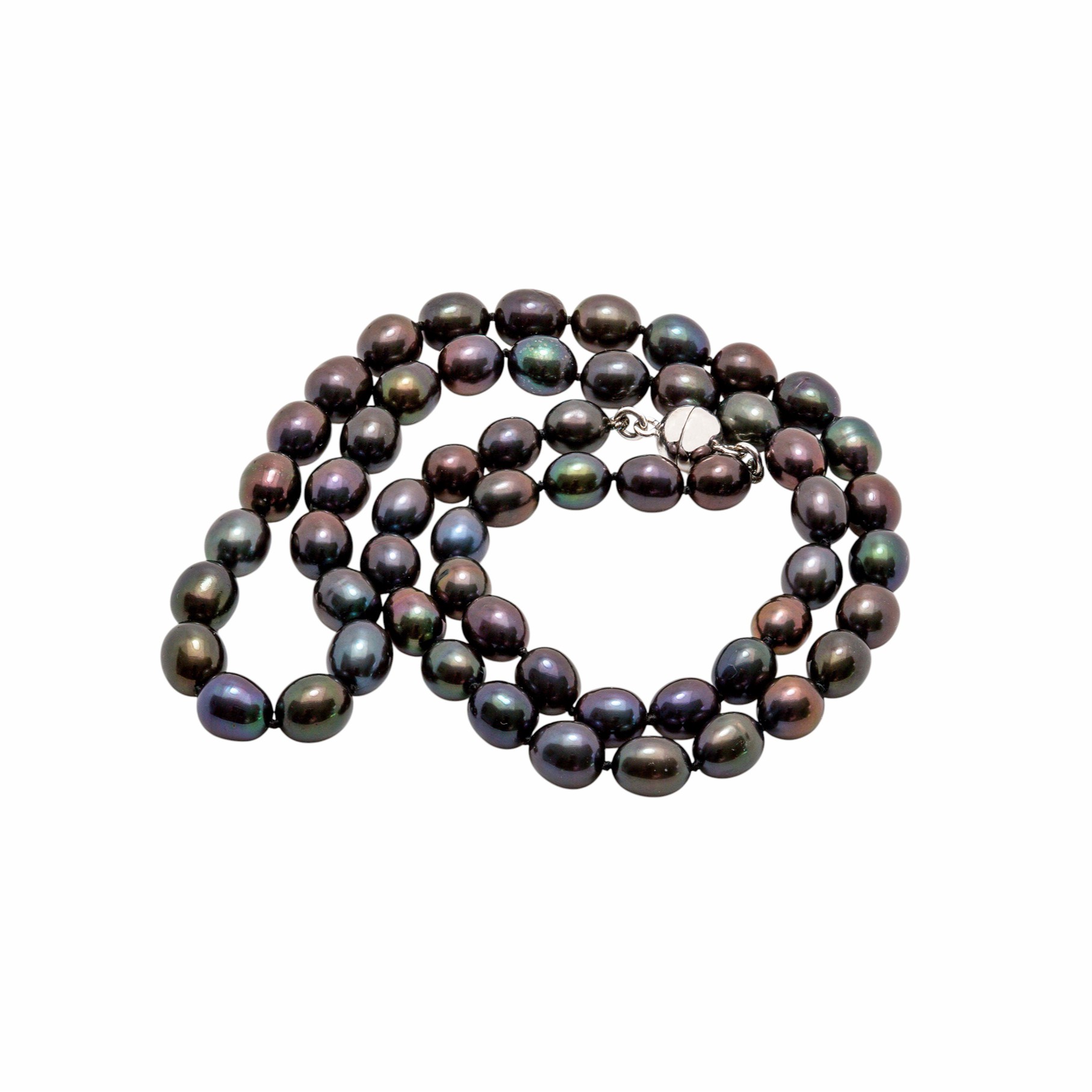 Irisierende Süßwasserperlenkette in Schwarz, Blau & Peacock