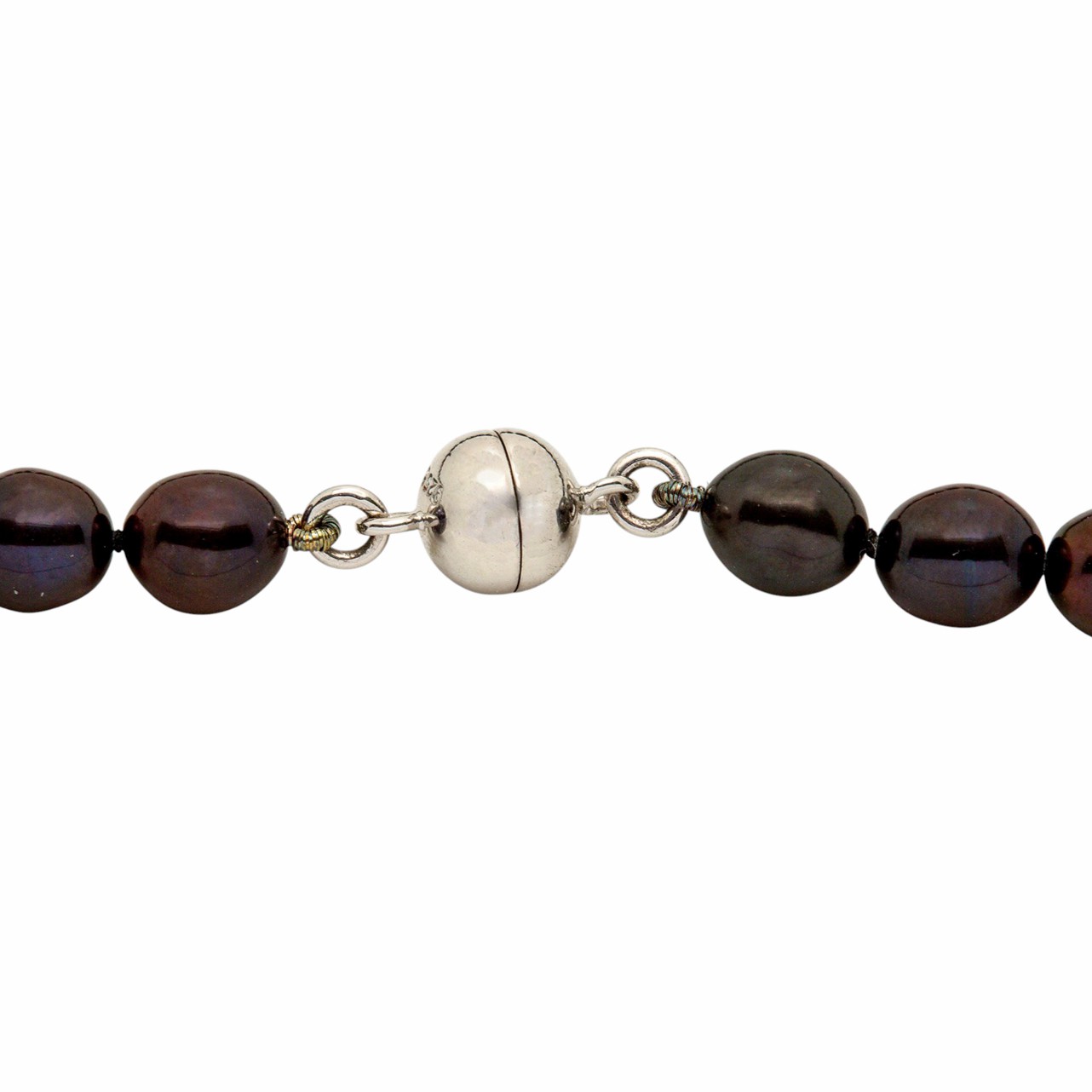 Diese elegante Halskette aus echten schwarzen Süßwasserzuchtperlen besticht durch ihr faszinierendes Farbspiel und ihre angenehm gleichmäßige Perlenform.