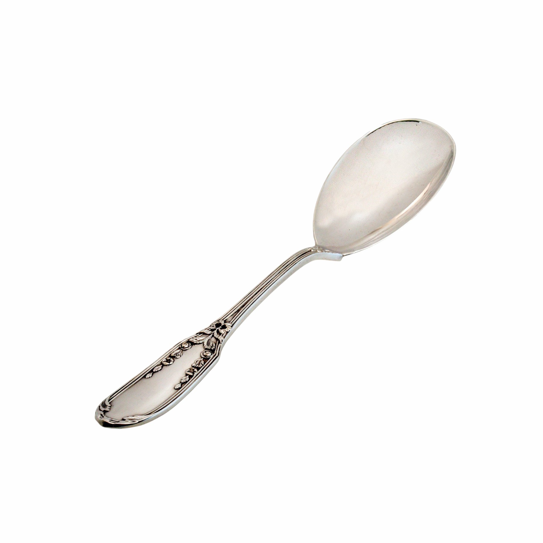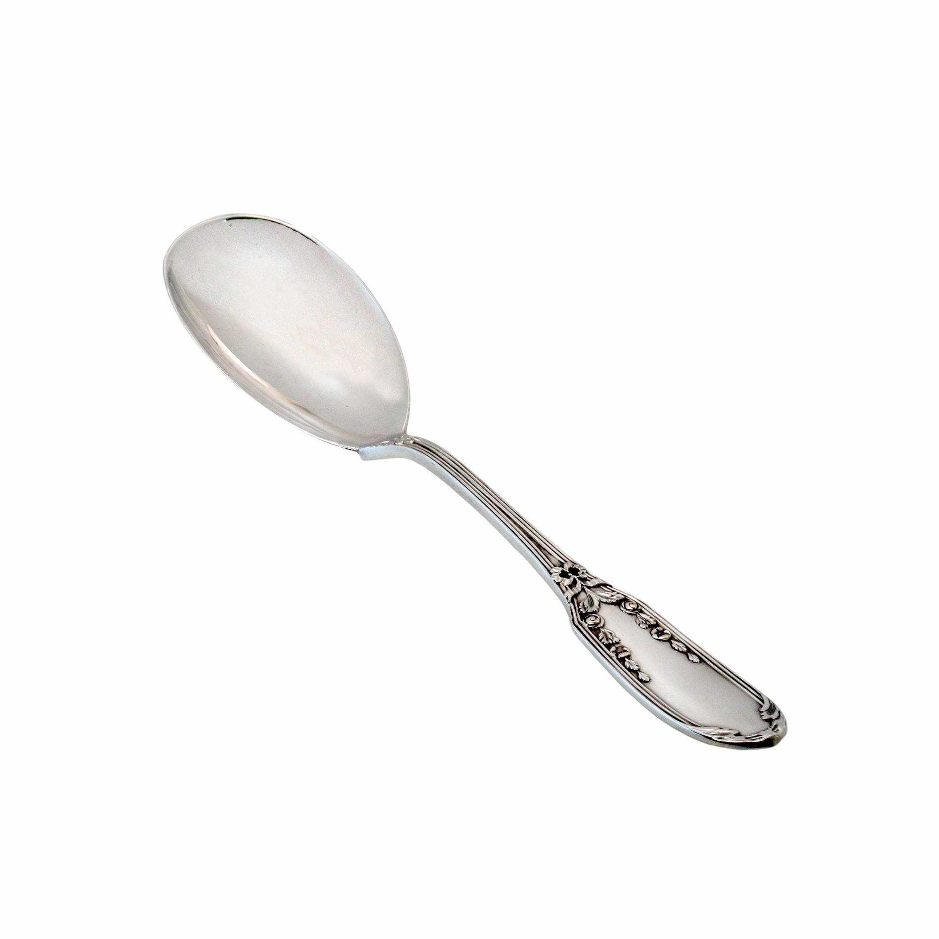 Die harmonisch geformten Griffe zeigen ein florales Dekor mit feiner Reliefarbeit, das dem Ensemble einen repräsentativen Charakter verleiht. Gefertigt aus hochwertigem 800er Silber überzeugt jedes Teil durch angenehme Haptik, solide Verarbeitung und langlebige Qualität.