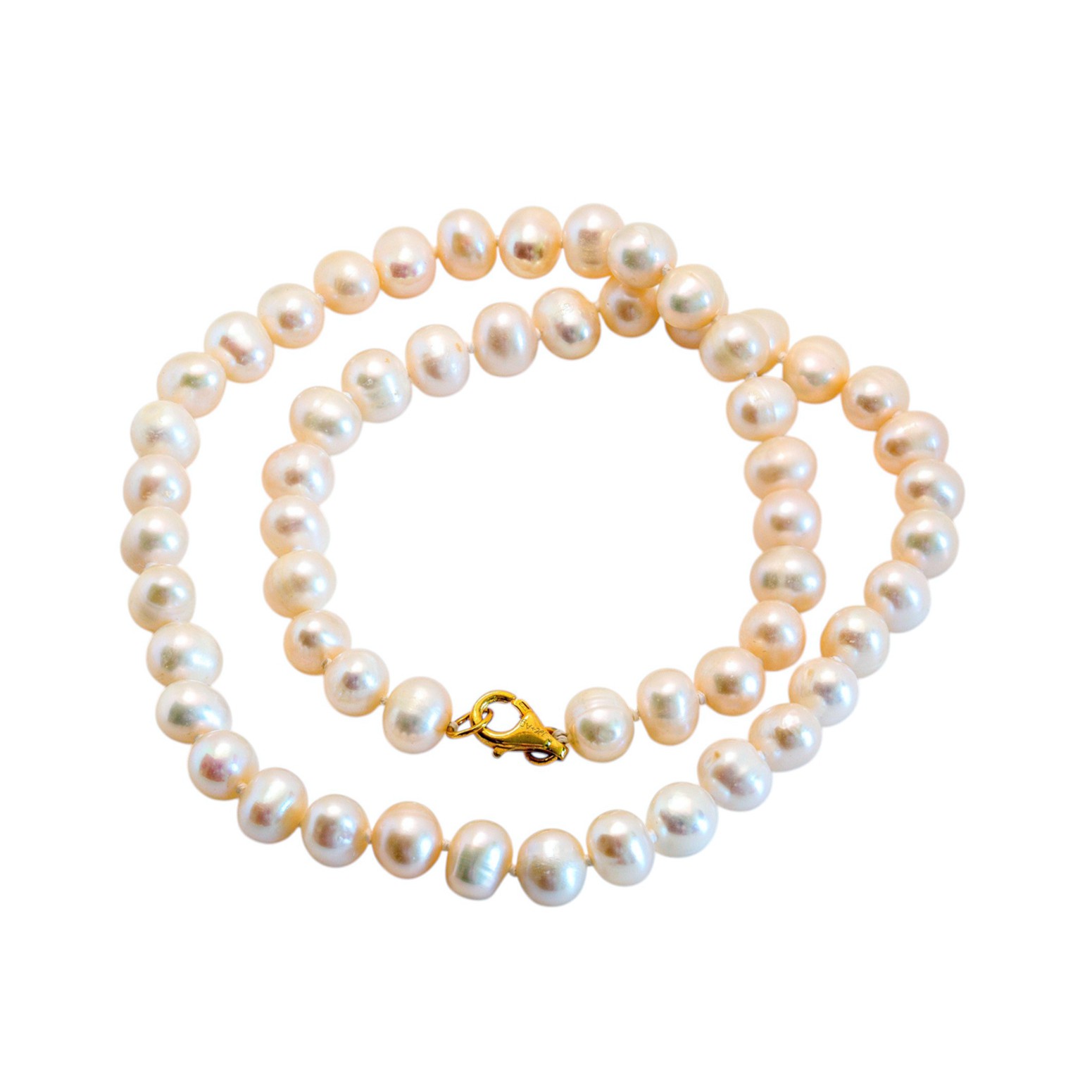 Perlenkette aus echten Süßwasserperlen mit vergoldetem 925 Sterlingsilber Verschluss