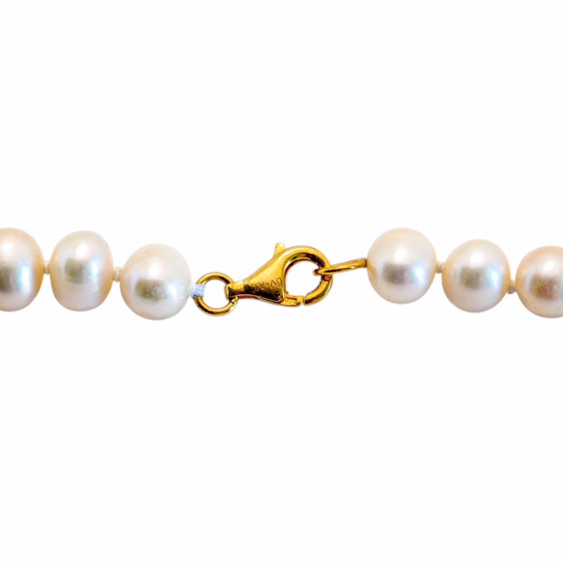 Gerade diese feinen Unterschiede machen jede Kette zu einem Unikat und unterstreichen den authentischen Charakter echten Perlenschmucks. Die Perlen schimmern in edlem Weiß mit zarten cremefarbenen Nuancen und verleihen dem Schmuckstück eine zeitlose Ausstrahlung.