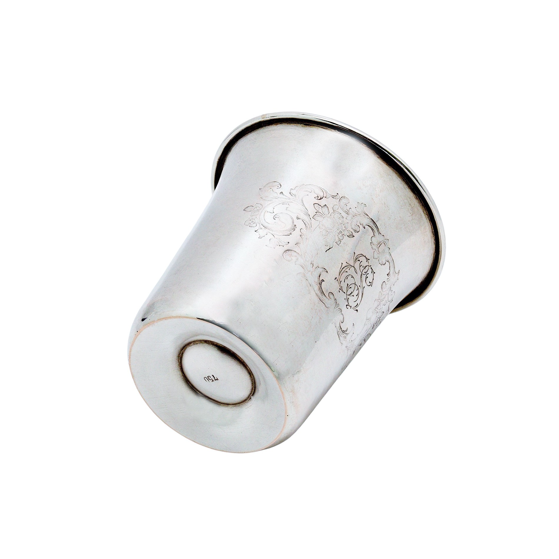 Silberbecher 750er Silber mit fein floralem Dekor und Initialgravur