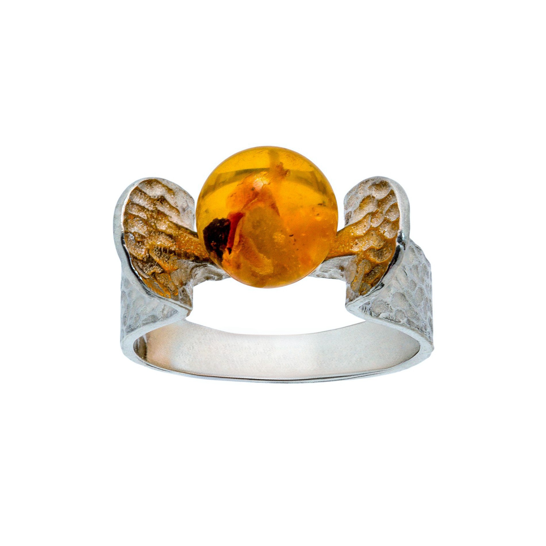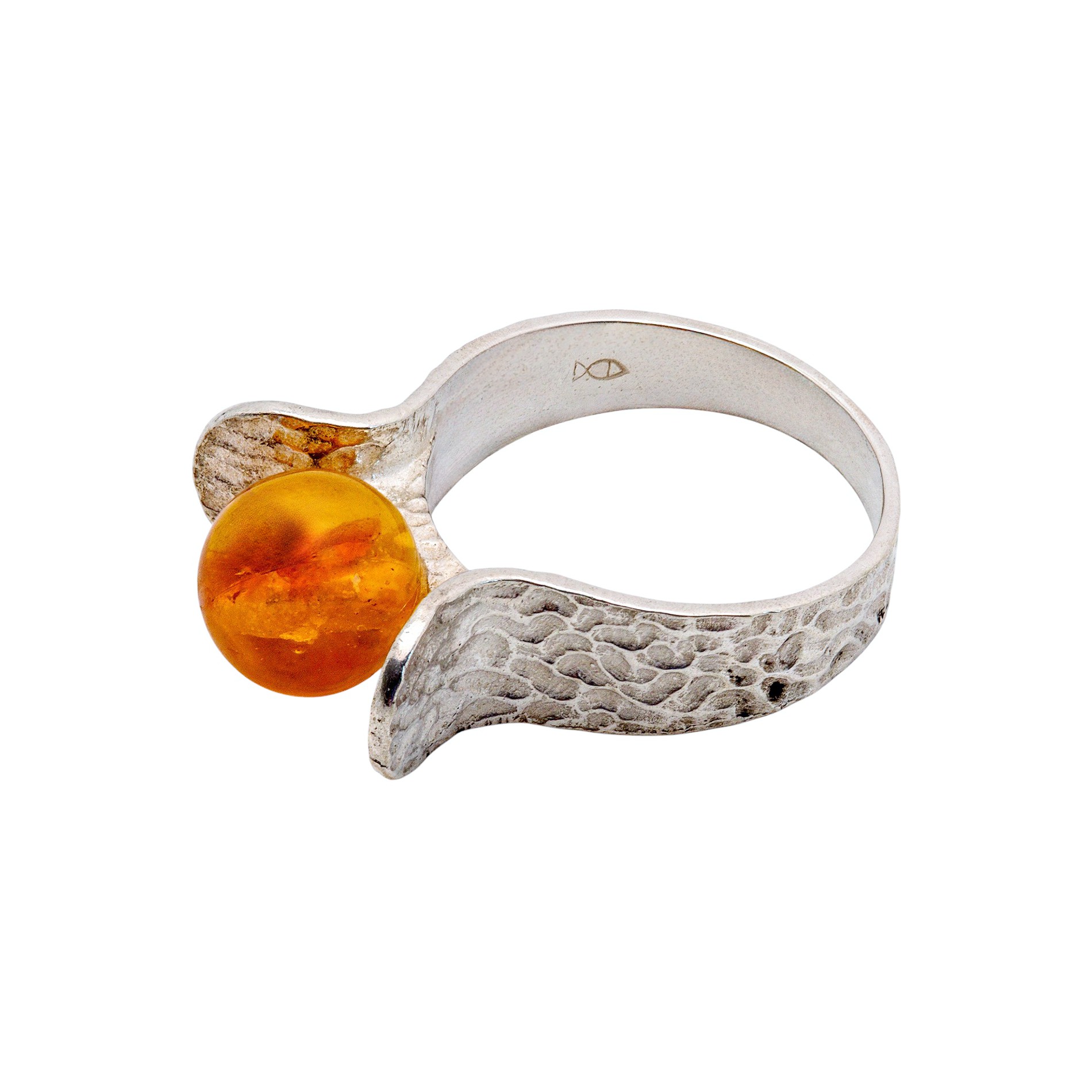 Vintage Silberring mit Bernstein Kugel – Fischland
